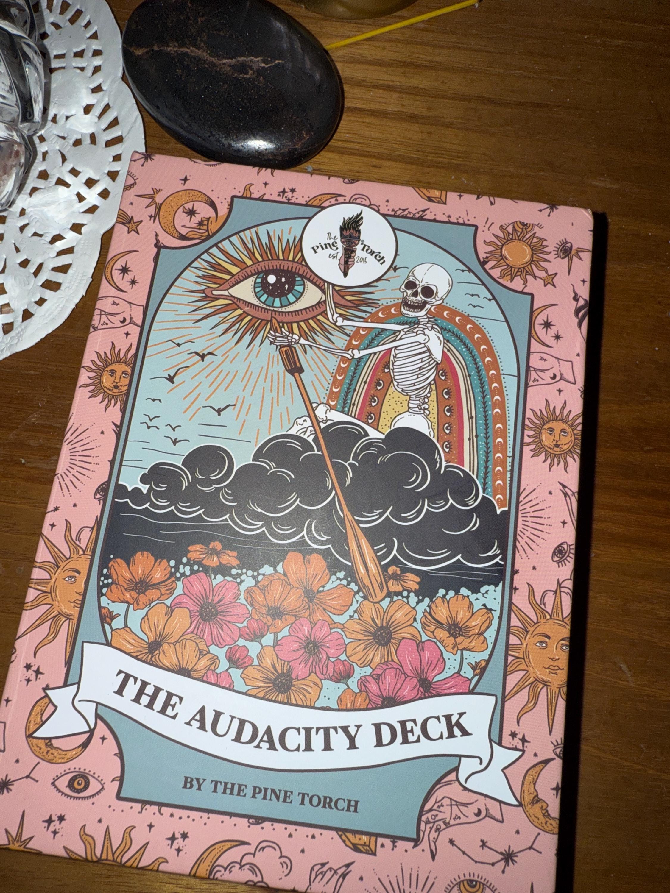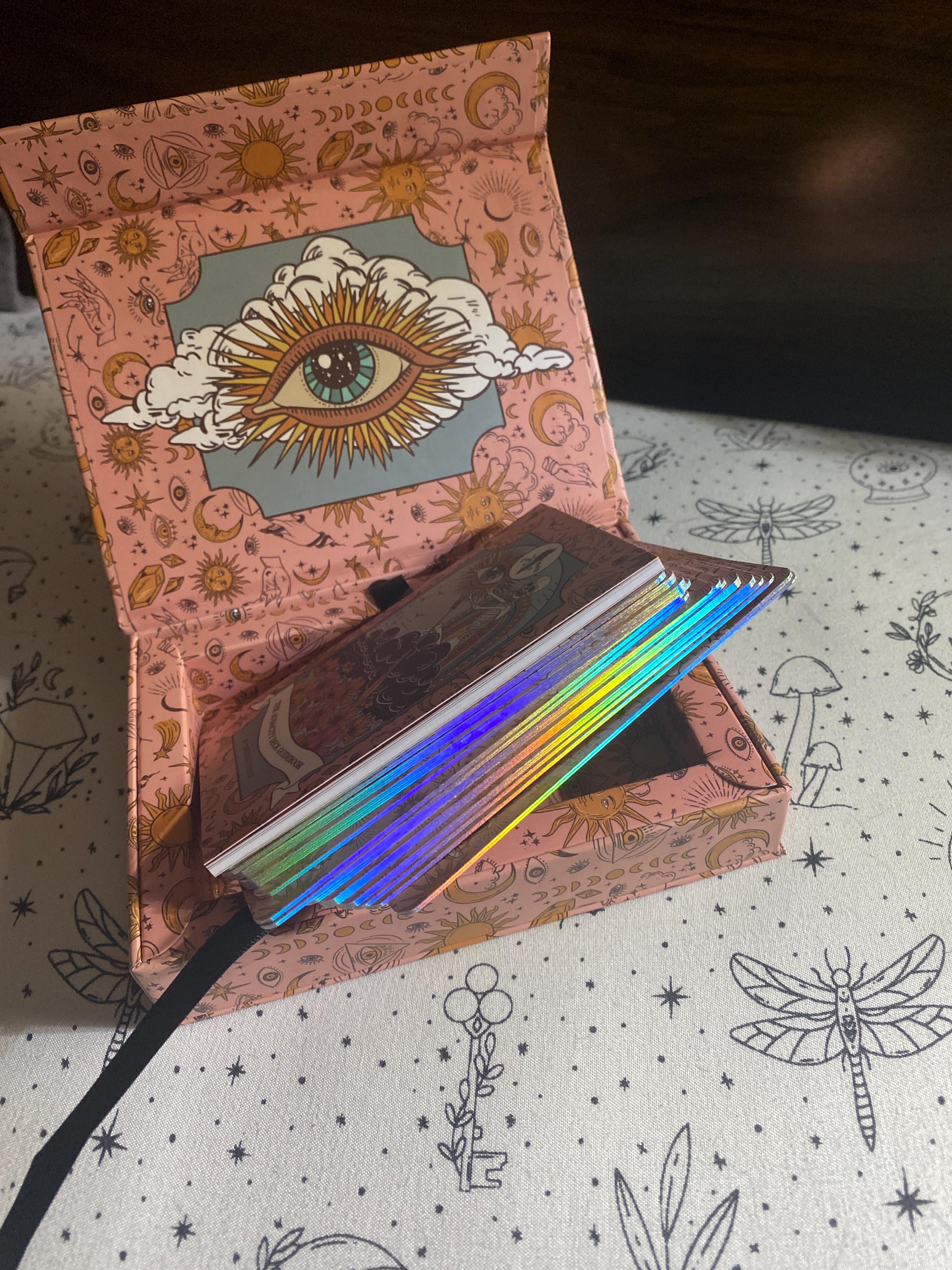 This fun, witty, quirky, sometimes poignant and beautiful deck includes 37 cards that will meet you at every stage of your inner monologue. These long-awaited playful cards are the pinnacle of The Pine Torch Tarot collection
